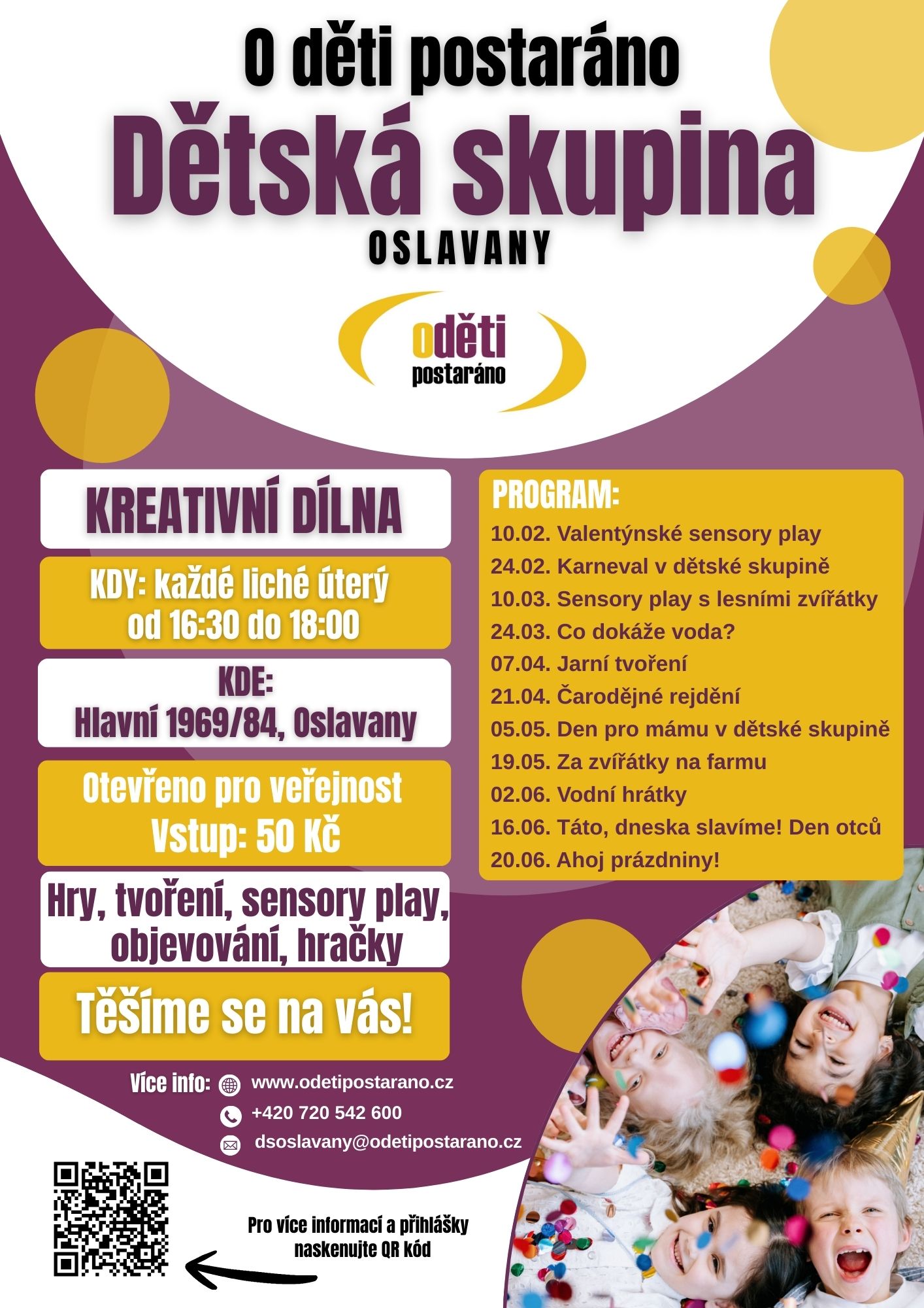 Dětská skupina O děti postaráno Oslavany se otevřela pro 16 dětí v říjnu 2025.