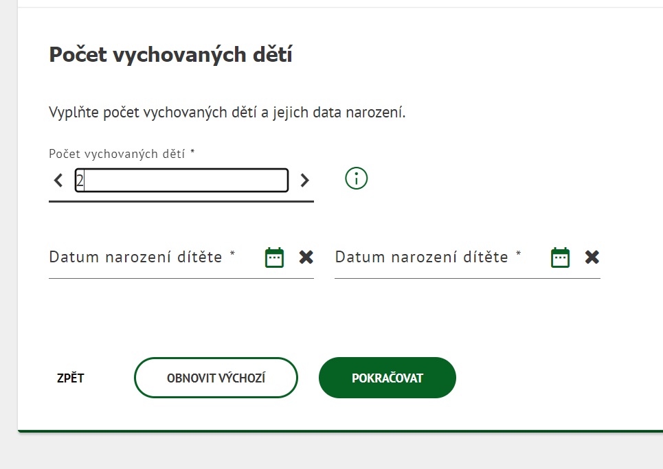Samotný portál již nevypadá nijak složitě. Na začátku uvidíte svoje osobní údaje a pod nimi budete požádáni o vyplnění jediné věci a to jsou data narození vašich dětí. Nic víc.