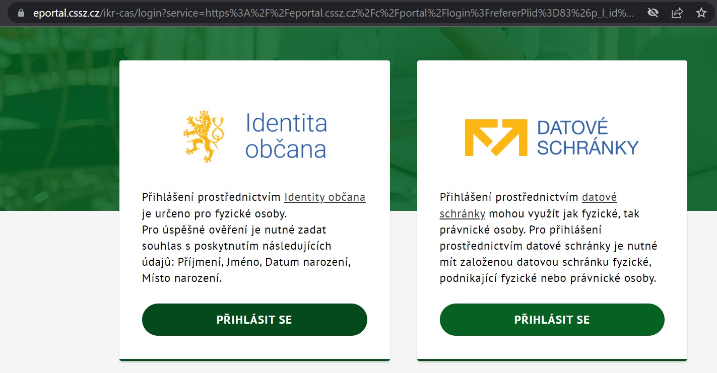 Přihlášení lze pomocí Identity občana, kam patří i námi vytvořená bankovní identita, nebo pomocí datové schránky.
