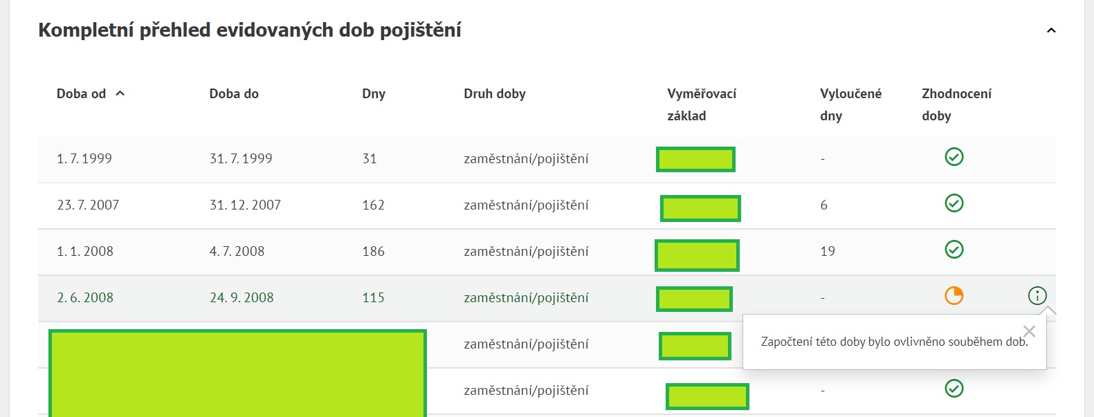 • dále máte možnost se podívat na seznam všech svých UKONČENÝCH zaměstnání, výši odvodů a další údaje