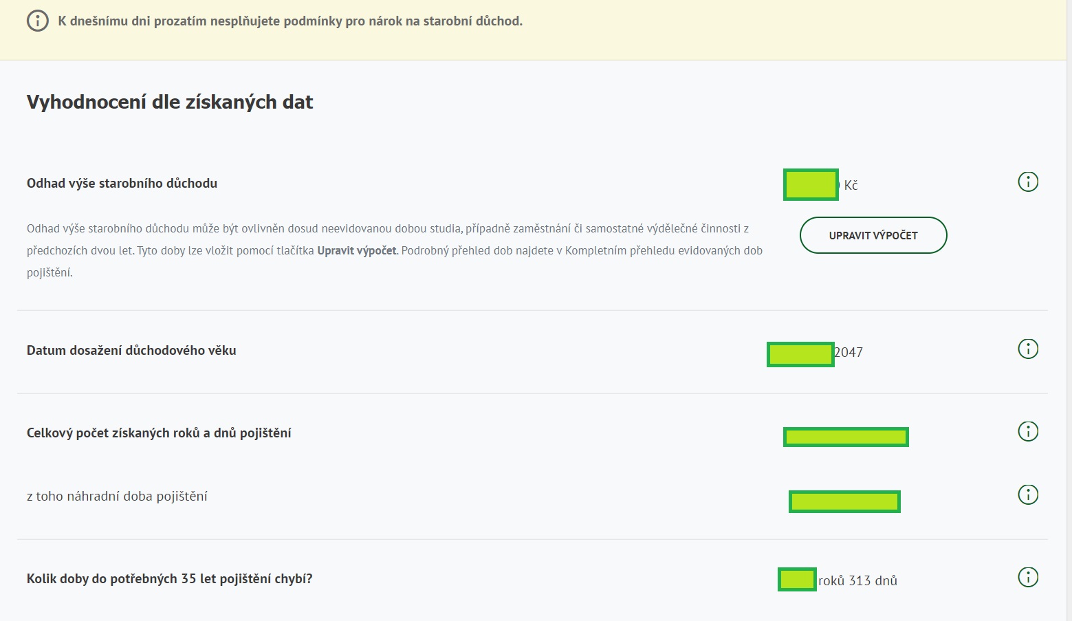 • informaci, že pravděpodobně hodnota důchodu, který vidíte, není konečná, protože počítá jen s příjmy, které jste dosud státu vykázal/a