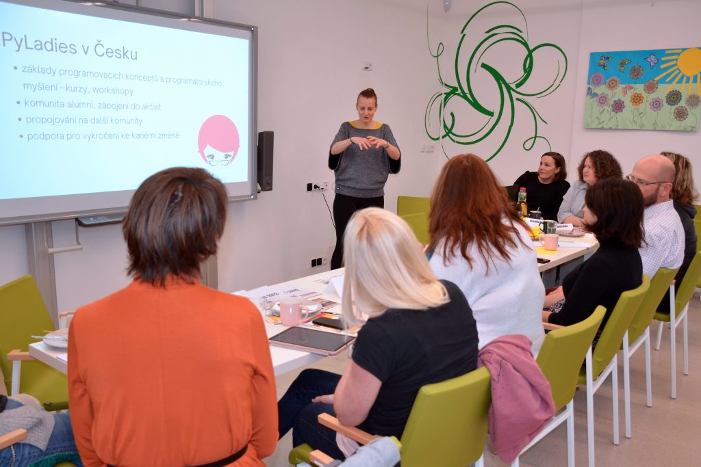 OBSAH: Anežka mluvila o významu komunit a bezpečného prostředí pro učení z pohledu žen vstupujících nebo již pracujících v IT. K nejvíce rezonujícím patřilo: