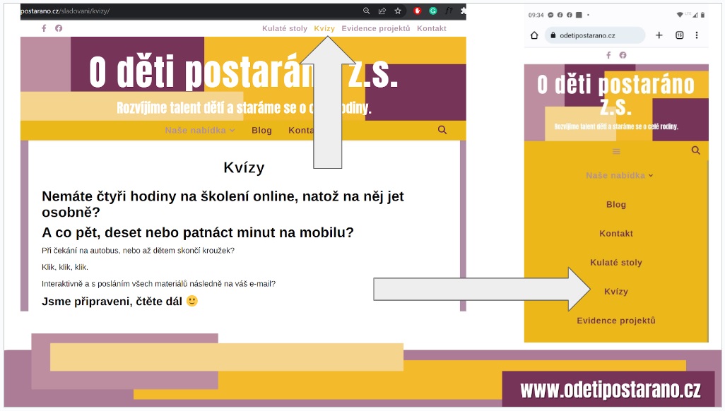 Ať se na náš web vrhnete z počítače nebo mobilního telefonu – tady vidíte, kudy ke kvízům. Kvízová školení jsou nejrychlejší cesta ke znalostem odkudkoli, v krátkém čase, třeba když postáváte ve frontě na úřadě, čekáte až dítě vyběhne po kroužku ze šatny apod. A jedním z nich je i kvízové školení s názvem „Práce v IT je pro každého“. Seznámíte se s několika pozicemi v oblasti IT, pro které není potřeba být matematickým géniem a které zaujmou i ty, kteří neodpovídají stereotypnímu vnímání „ajťáka“ – jsou komunikativní, pečující nebo analytičtí…