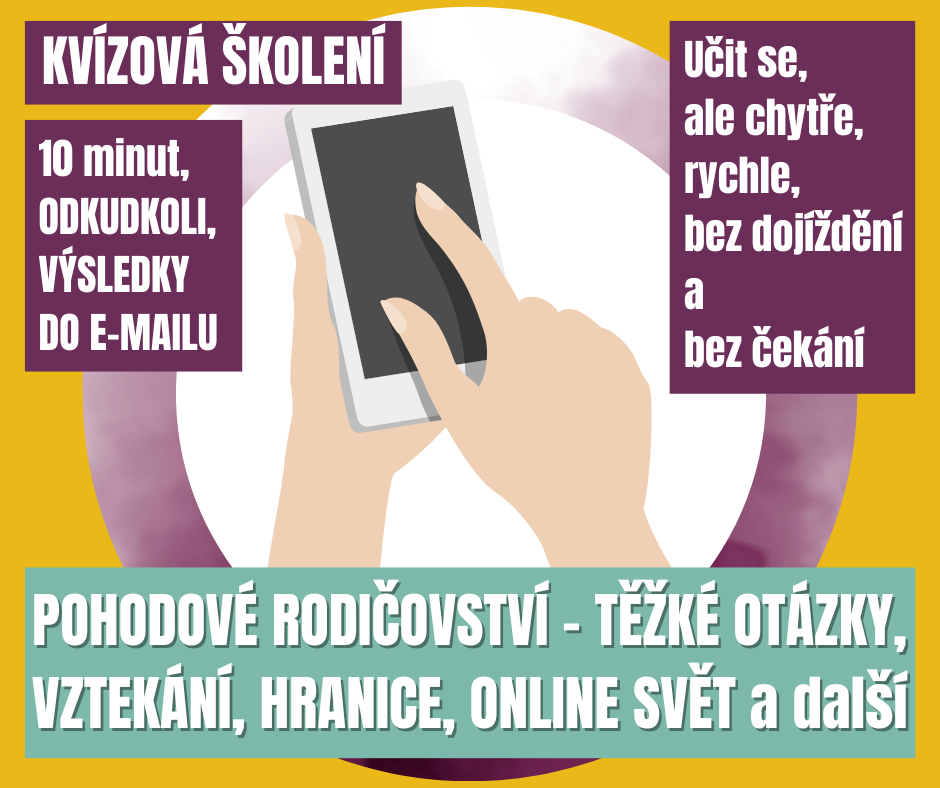 Postupně ale kvízová školení začínají být populární rychloškolení a my s radostí přidáváme další témata – aktuálně pracujeme na oblasti rodičovských kompetencí.