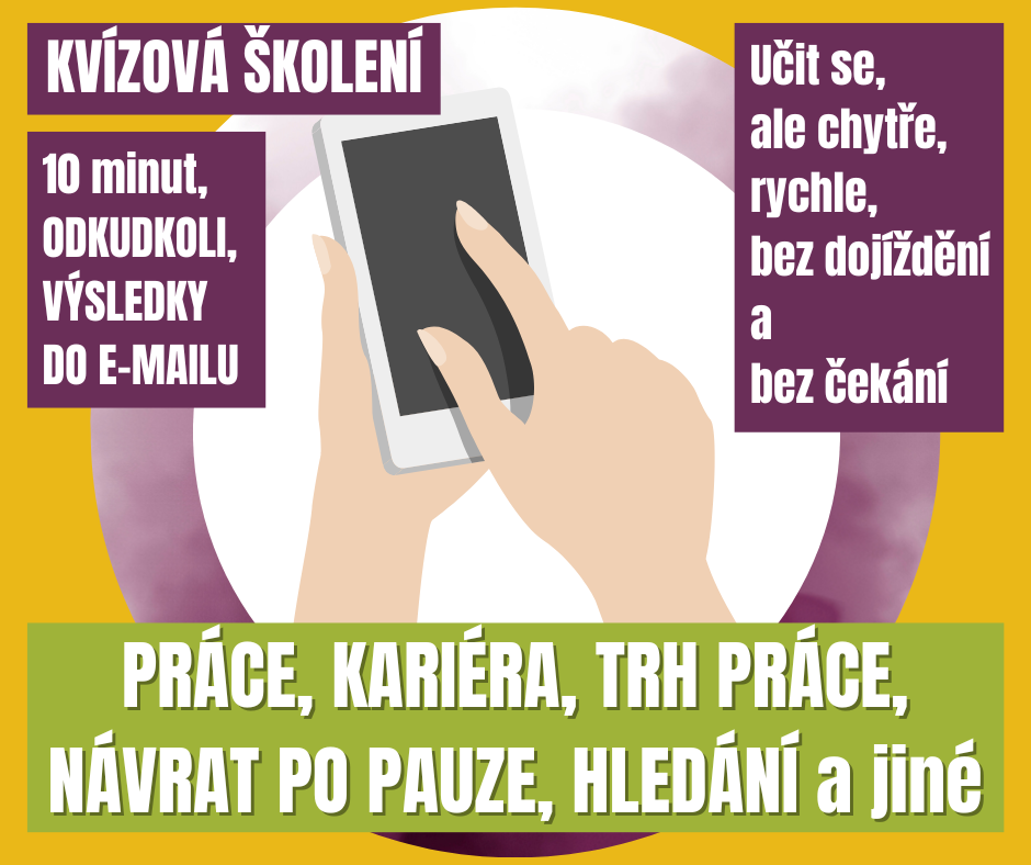Kvízová školení vznikla poprvé s tématem přípravy na vstup na trh práce s podporou Nadace OSF na základě komunikace s Úřadem práce v Ivančicích. Proč? Protože během diskuse u kulatého stolu se ukázalo, že pro mnoho žen je problém se vzdělávat, pokud kurz zahrnuje ježdění do Brna. Nebo obecně ježdění na větší vzdálenost. Najít hlídání, zaplatit cestu… Dávalo nám to smysl a tak jsme hledali řešení, které by zpřístupnilo znalosti zkušených odborníků ženám, které čeká návrat do práce, a nejen jim, formou, která je přístupnější než fyzické školení a dokonce i než online webináře.