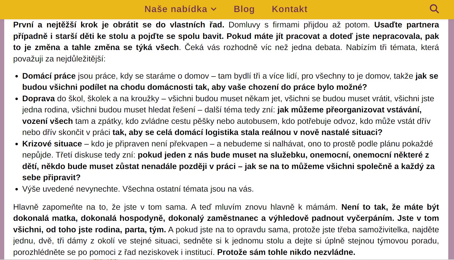 Eli mluvila o tom, že pokud jste se nezastavili už dřív, tak než se vrátíte do práce, nebo pokud jste se už dostali do situace, kdy žena je před zhroucením, nebo taky klidně i po něm – ZASTAVTE SE.