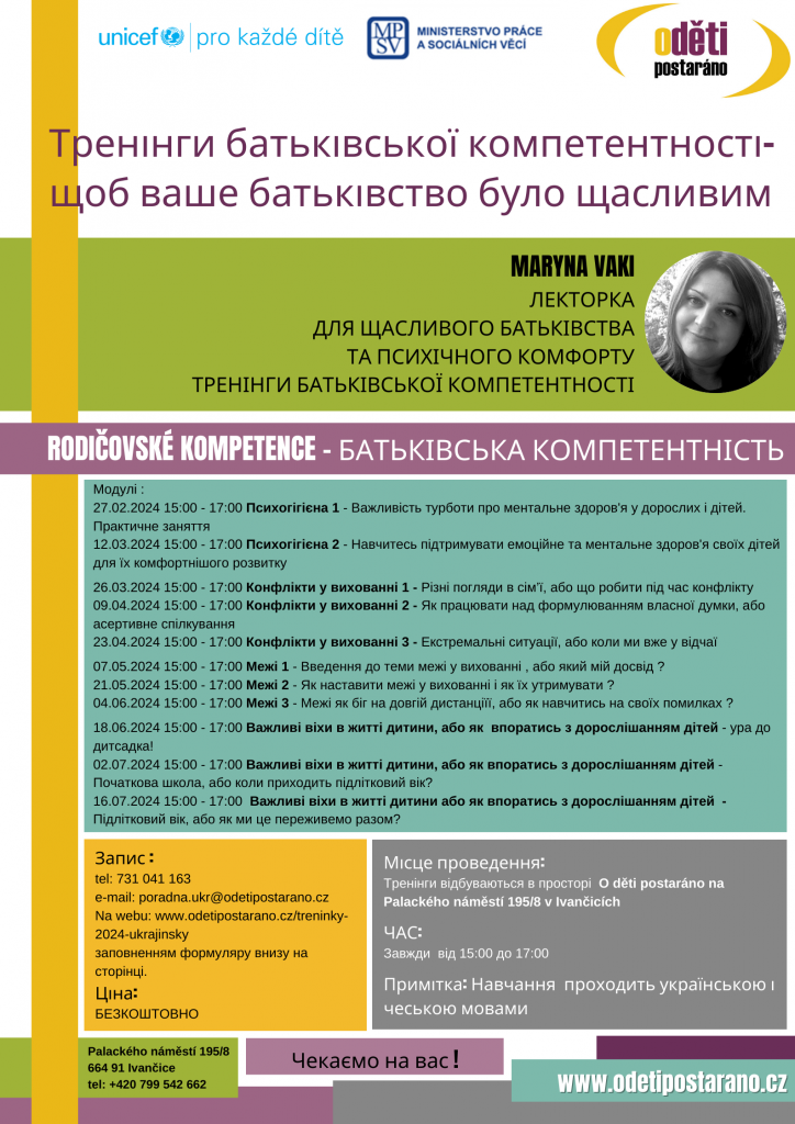 Форма: Тренінги проходять в просторах O děti postaráno na Palackého náměstí 195/8 v Ivančicích завжди від 15:00 до 17:00
