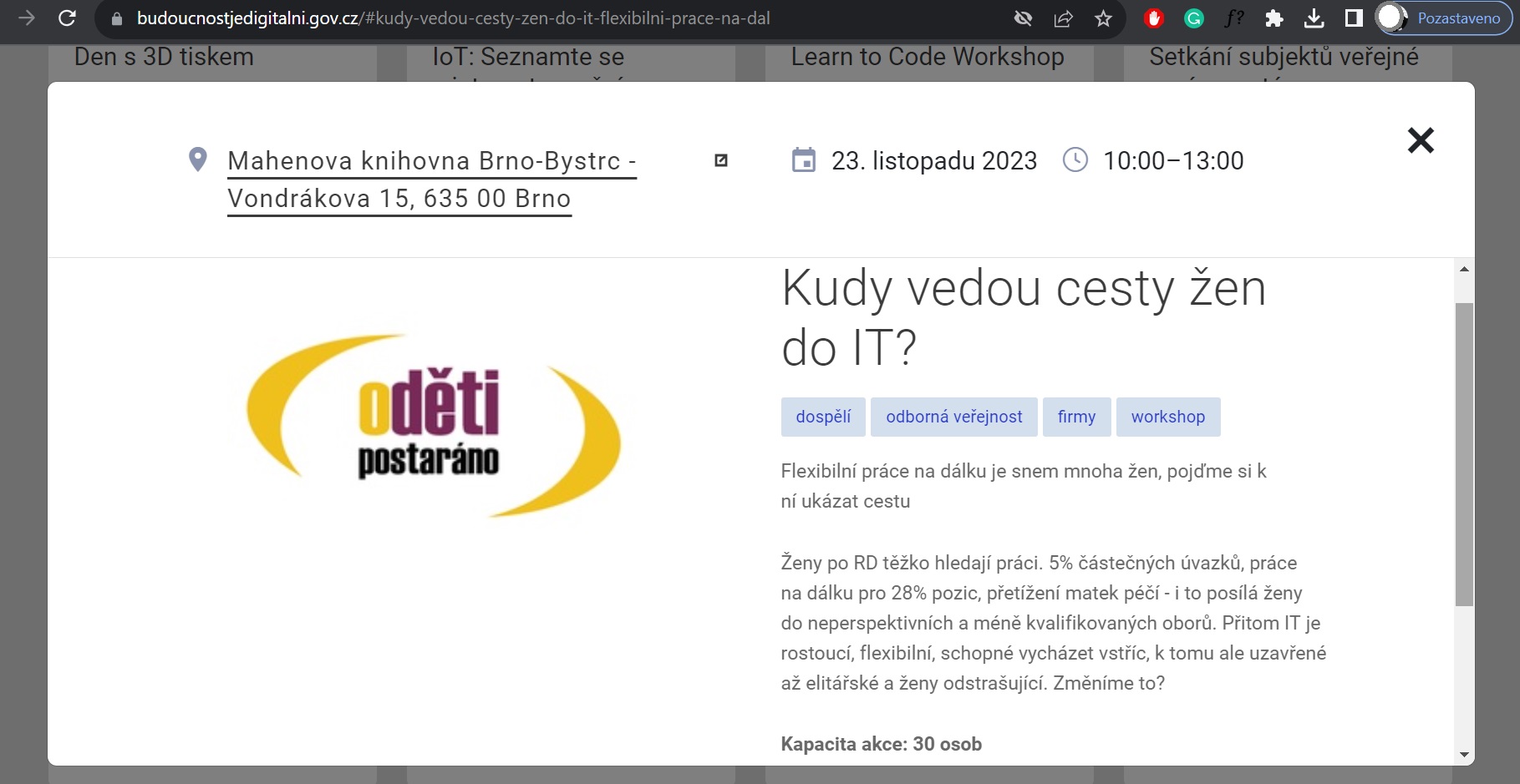 V týdnu od 20.11.2023 se můžete těšit na mnoho zajímavých přednášek, kurzů a aktivit online i offline po celé ČR.