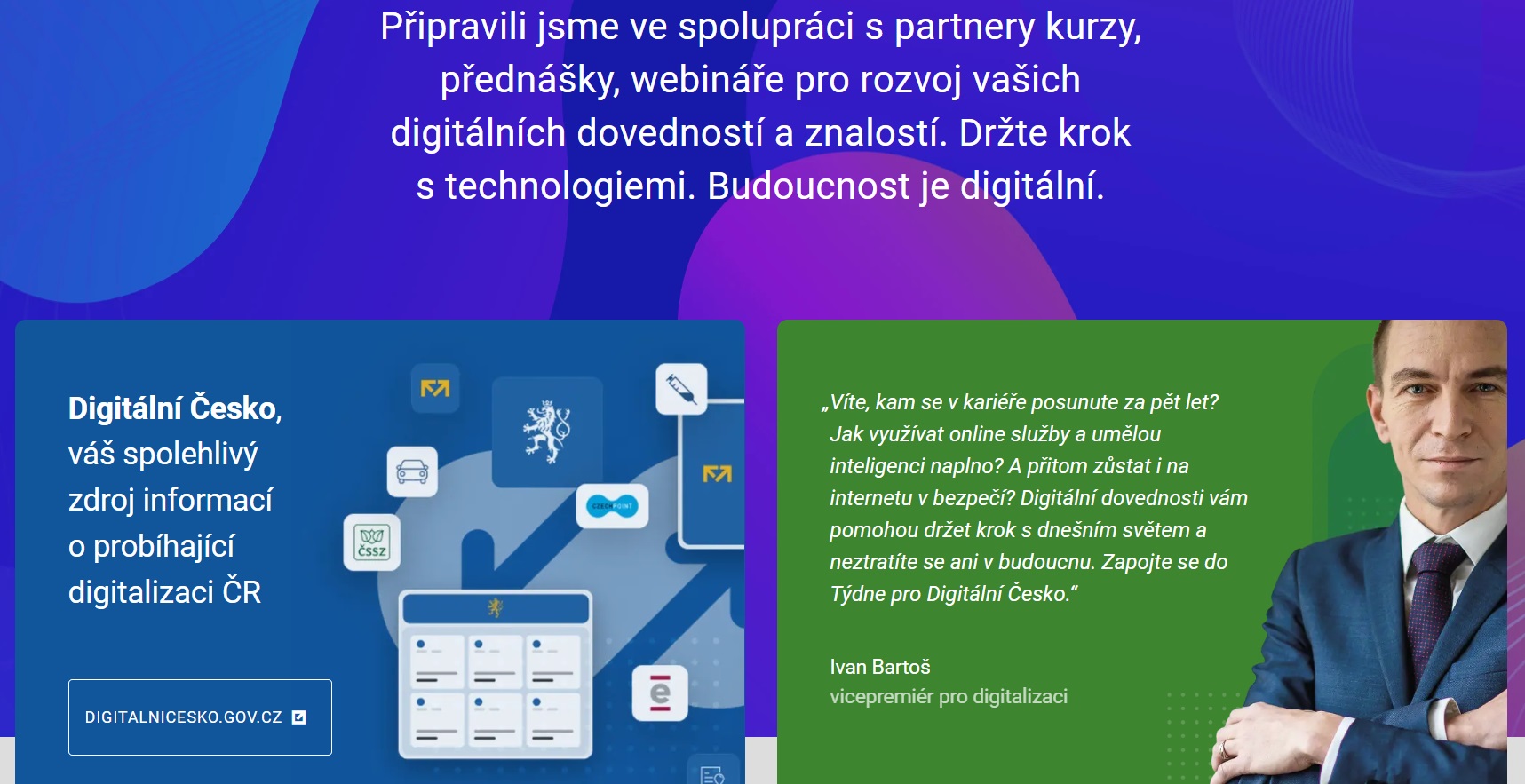 TÝDEN PRO DIGITÁLNÍ ČESKO POŘÁDÁ ÚŘAD VLÁDY A ORGANIZACE DIGITÁLNÍ ČESKO.