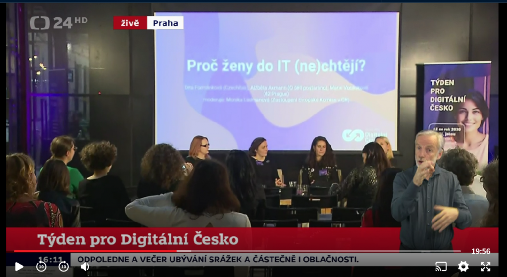 Za naši organizaci se účastnila Alžběta Eli Axmann panelu Proč ženy do IT (ne)chtějí. Spolu s ní diskutovaly: