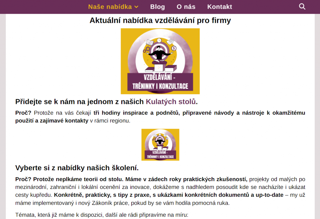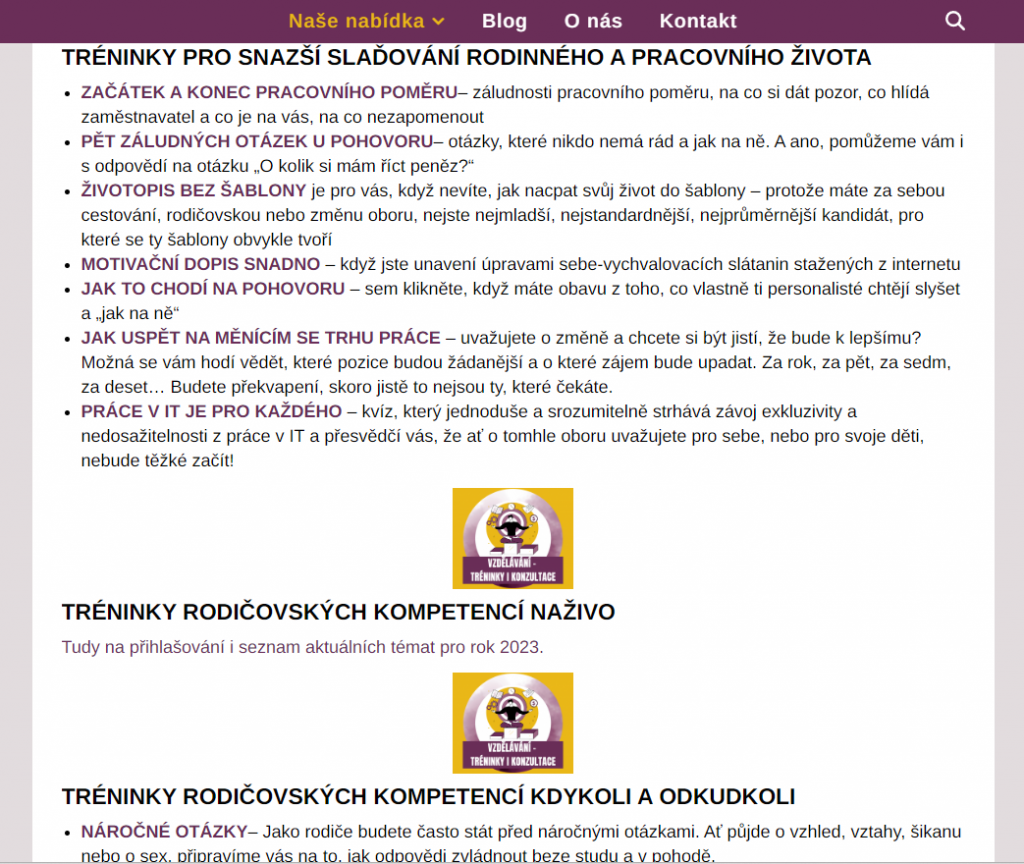 Akce, tipy, zajímavosti,  Kulaté stoly,  Kvízová školení,  Na kafe s HR,  Poradna pro rodiny,  Vzděláváme a slaďujeme