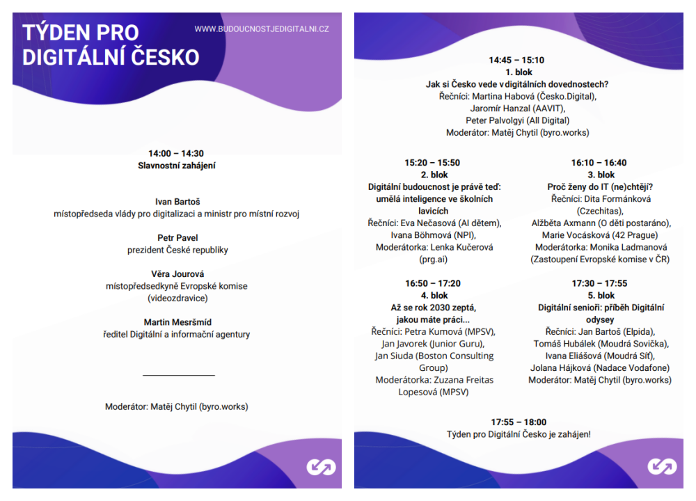 Akce organizovaná Úřadem vlády ČR a zaštítěná ministrem pro digitalizaci Ivanem Bartošem. Jejím cílem je umožnit organizacím, které nabízí jakoukoli podporu v oblasti digitalizace, aby byly vidět. Během týdne se na více než stovce akcí po celé ČR prezentují instituce, firmy i neziskovky s tréninky, diskusemi, online nástroji a dalším obsahem pro děti, dospělé i seniory s cílem posunout se k cíli, kterým je 80% digitálně gramotné populace do roku 2030. A to není malý cíl, aktuálně chybí digitální gramotnost skoro polovině obyvatel ČR.